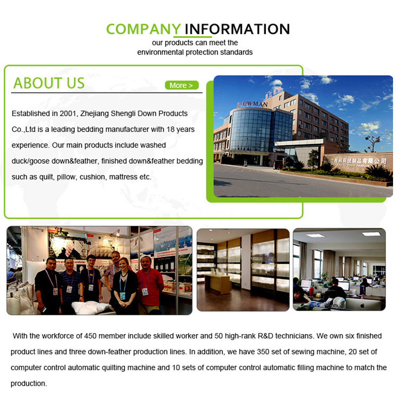 We are a factory which has engaged in down/feather bedding products for over 18 years, we have